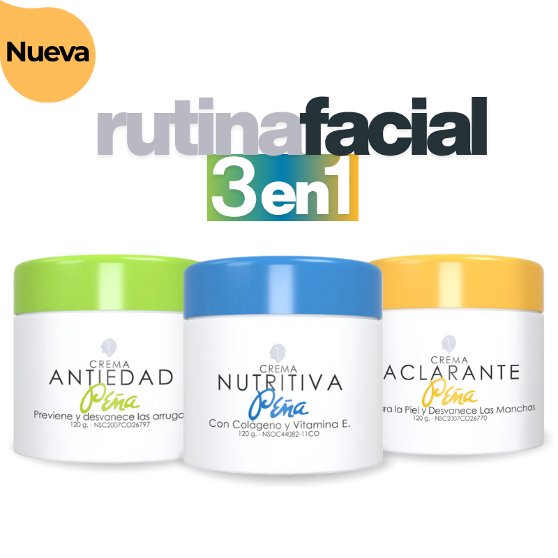 RUTINA FACIAL COMPLETA 3 EN 1 PEÑA: Aclara + Nutre + Rejuvenece